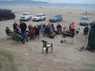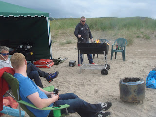 Phil Barron and his good lady wife Louise excelled themselves in laying on a barbeque, helped by a few friends, that would be hard to beat. A large gazebo with an extension had been constructed on the beach in case of bad weather and for sleeping accommodation if needed. Those who arrived early were treated to Phil's famous stews, brewed up on a gas burner while the barbeque was being fired up. The recipe for the stews is his trade secret so no point in asking, but taste delicious. Boxes of burgers, bags of baps, lettuce, tomato, onions, sauces, disposable bowls, plates, glasses etc were all there waiting.