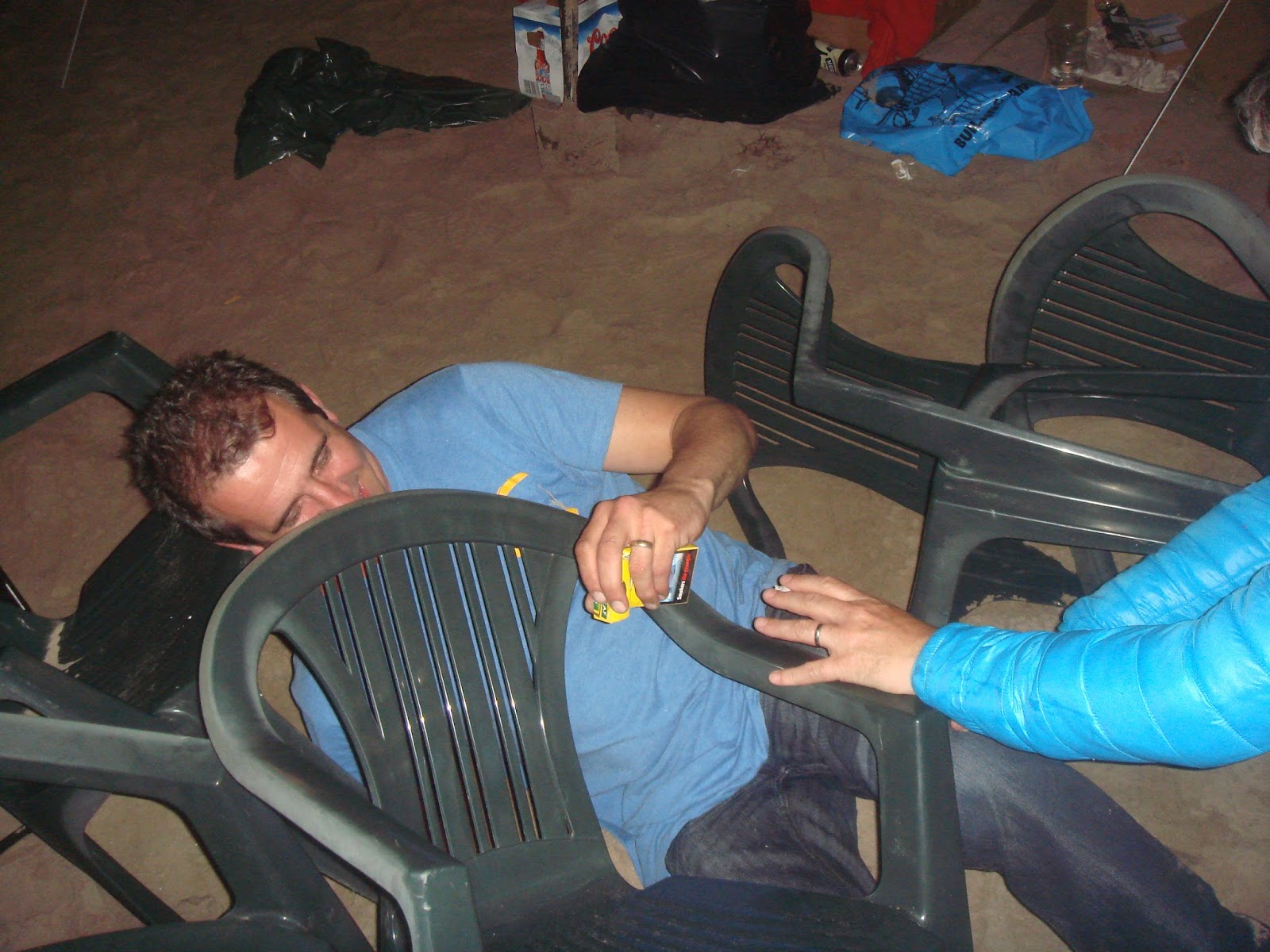 While all the preparations were going on, Al, Walter and Rory were zooming round the area on their paramotors. Gradually as the evening wore on, some people drifted away - particularly those who had children along or who had children at home to go back to. That left a hard core group huddled round the firepit, lashing back the drink and talking rubbish. One or two seemed to have a wee bit of a balance problem at times.